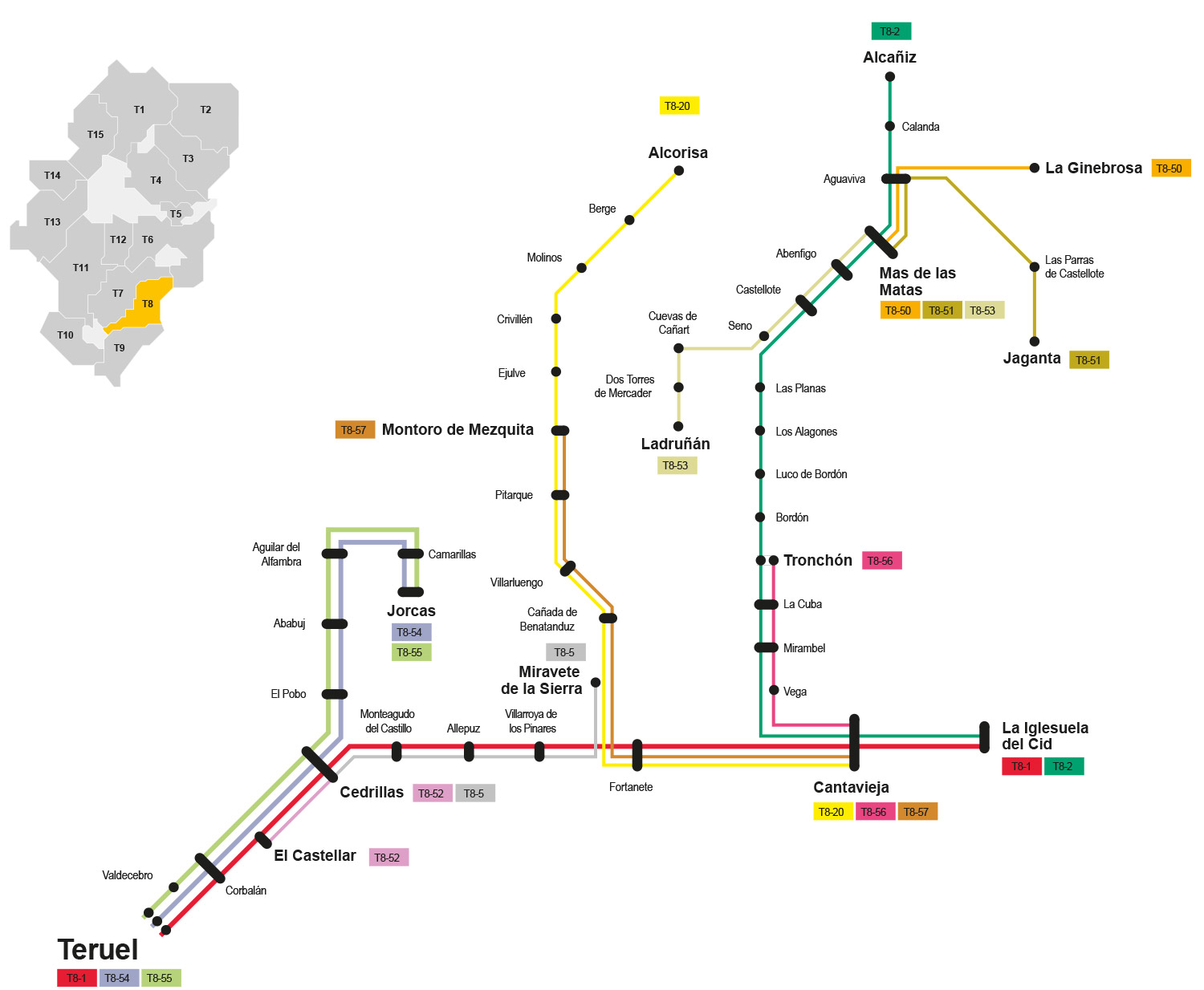 Líneas regulares del Área del Maestrazgo con Teruel y Bajo Aragón